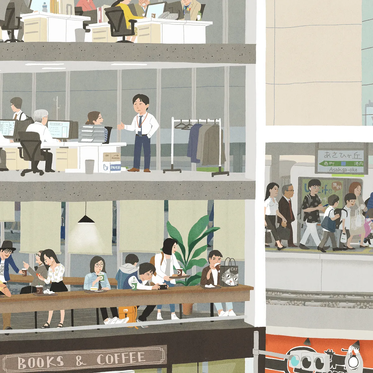 Above and below ground, spaces stretch out like a maze, teeming with people coming and going.