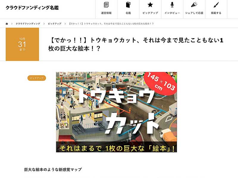 トウキョウカットのプロジェクトが「クラウドファウンディング名鑑」に掲載されて...